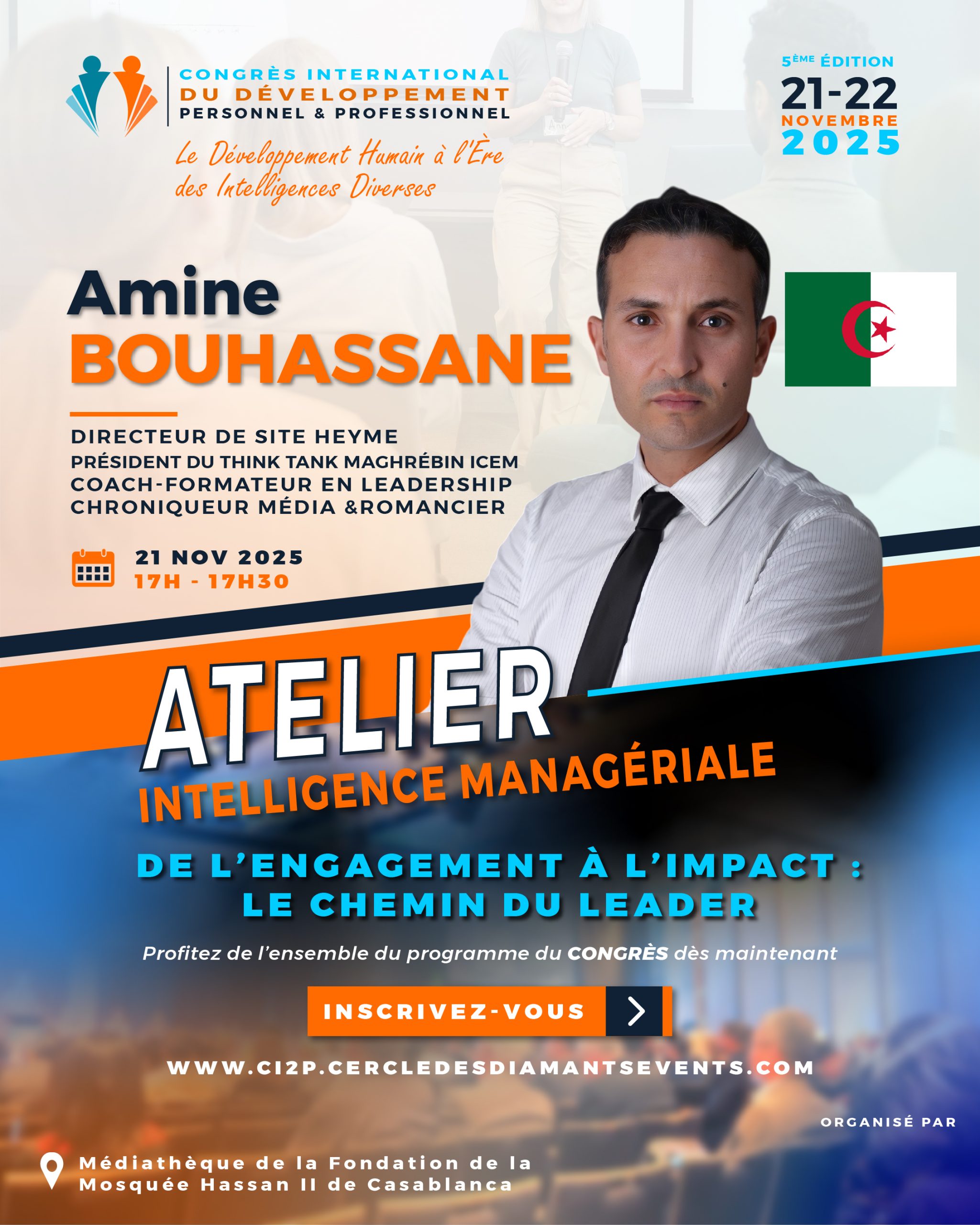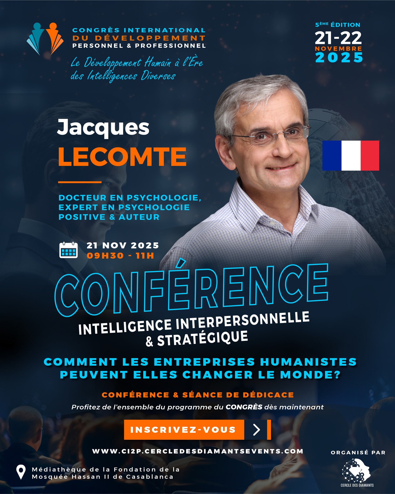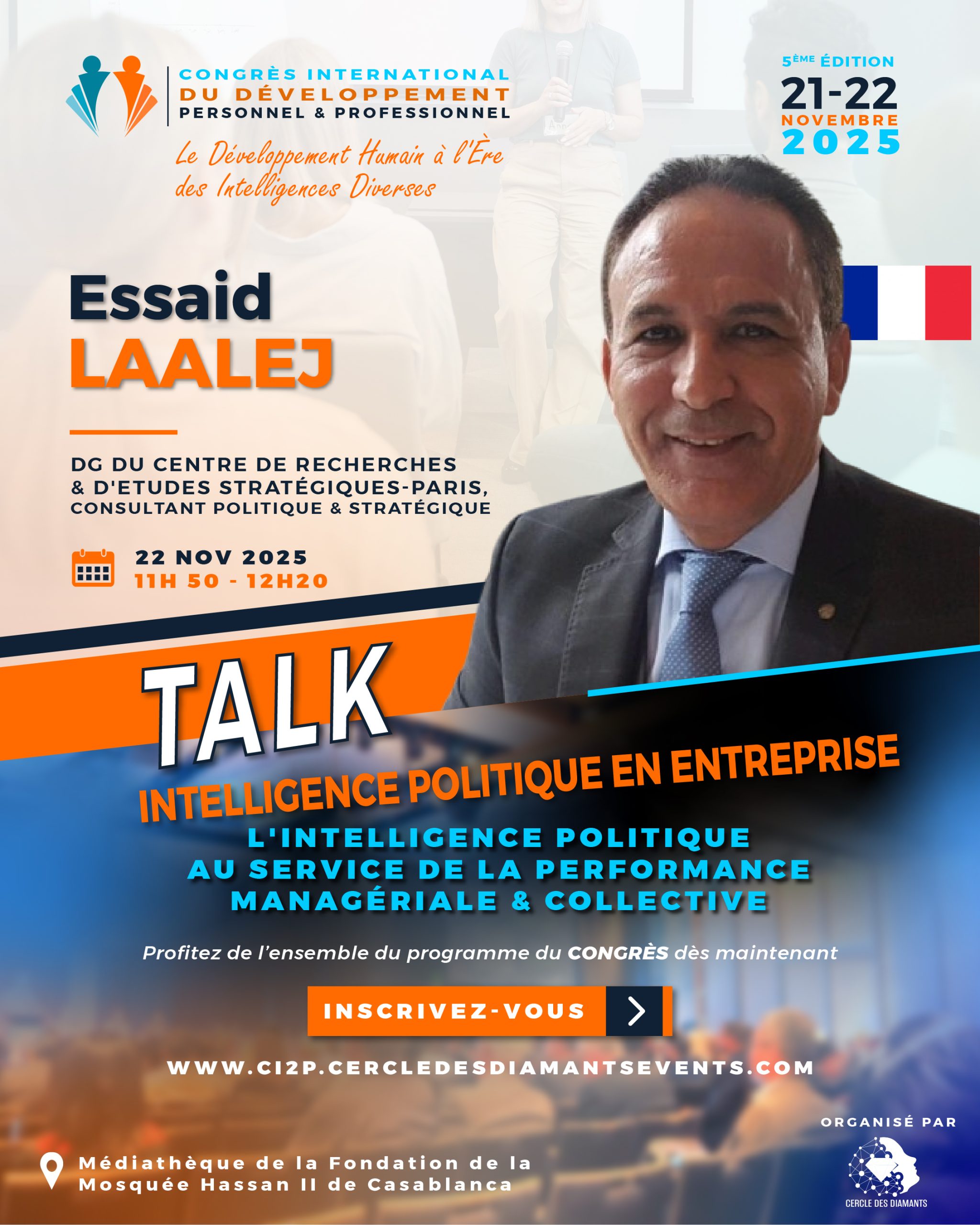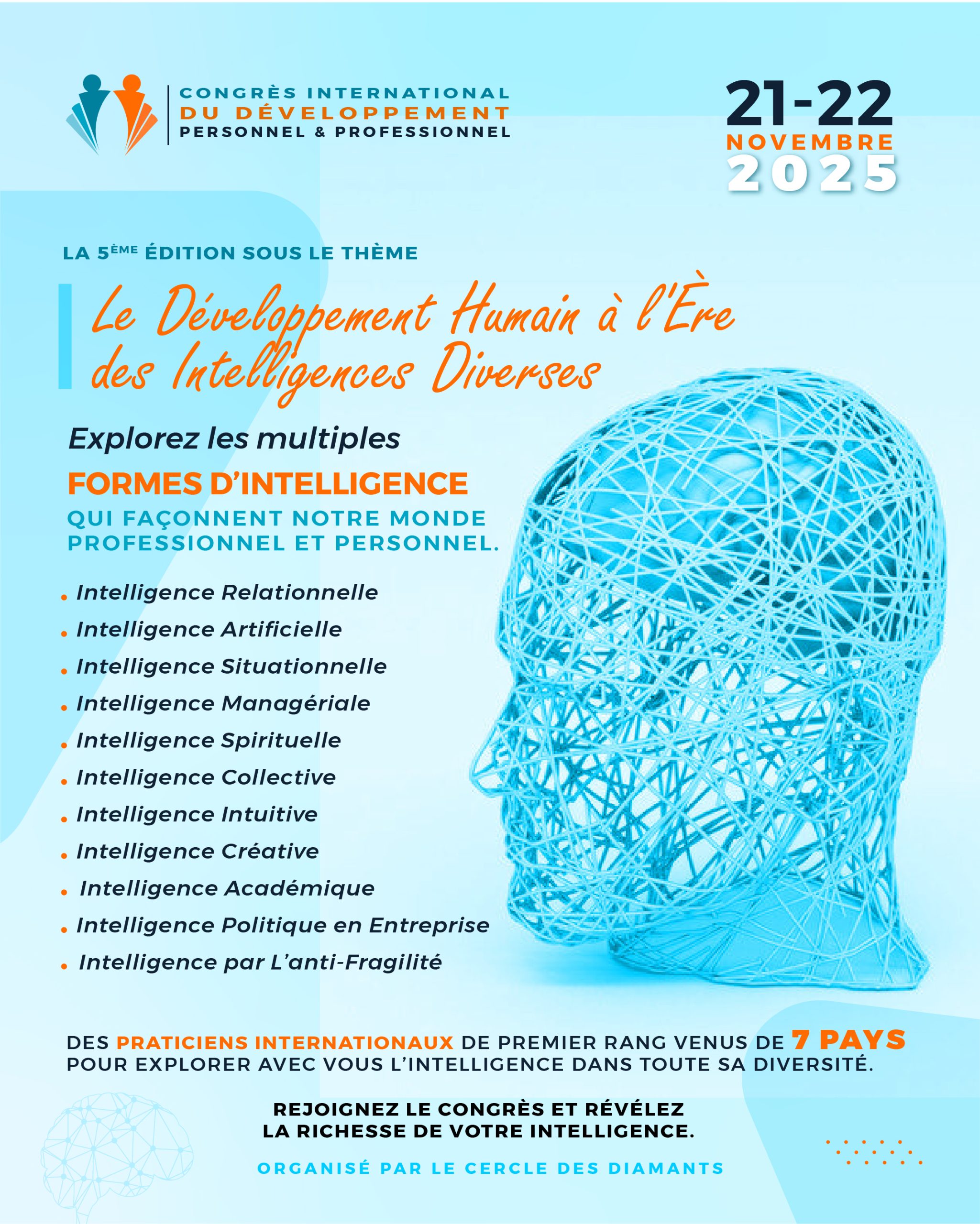 Découvrez le programme officiel du Congrès International du Développement Personnel et Professionnel, un rendez-vous unique qui réunit 11 intervenants de renommée internationale, venus spécialement de différents pays pour partager leur expertise et leurs meilleures pratiques.