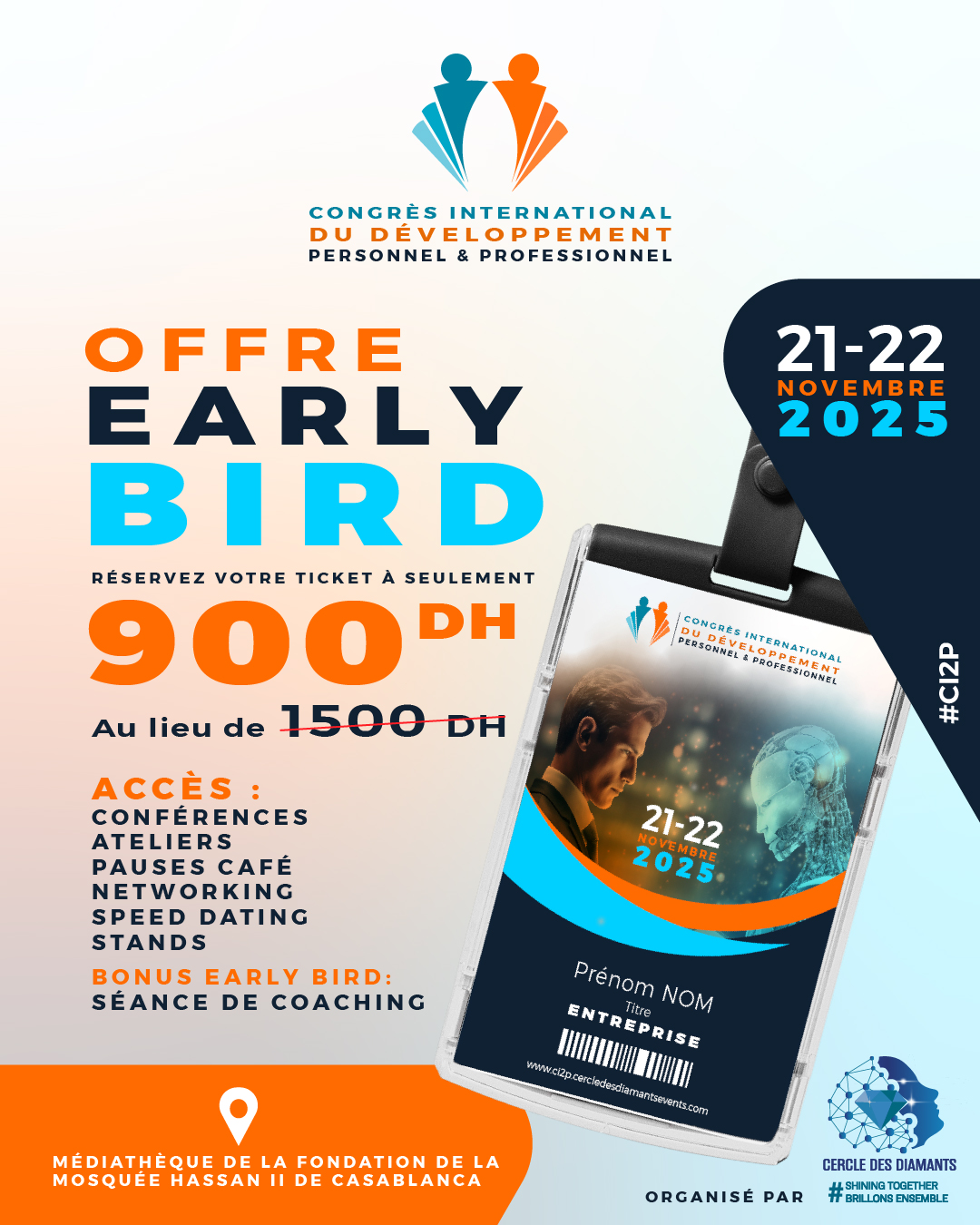 Notre programme a été conçu pour offrir un équilibre entre conférences, ateliers interactifs et moments de networking afin de garantir une expérience complète et transformationnelle.