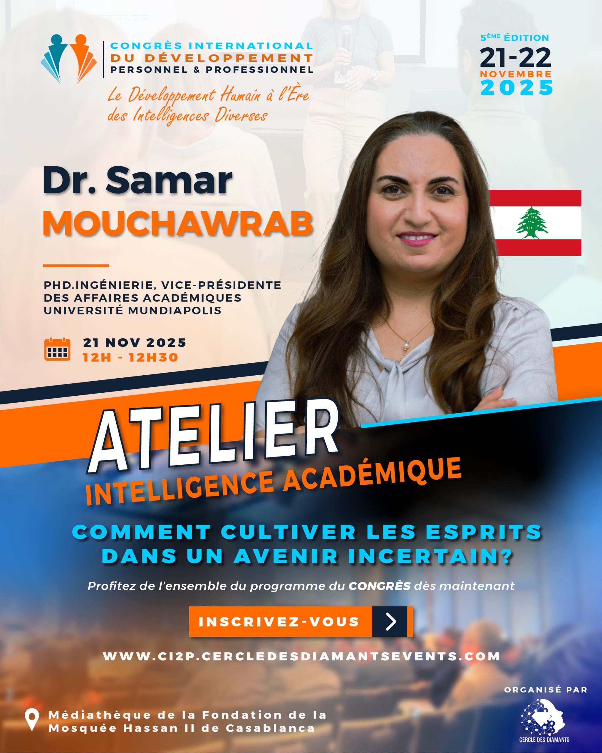- Faciliter des interactions avec des Experts internationaux & exposer des outils novateurs au service d’un Développement Humain Harmonieux avec le contexte changeant